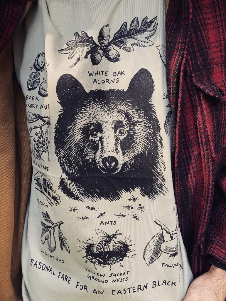 GINSENG HAUL T-SHIRT now available through webstore link in profile on a high quality AsColour T in a chestnut brown. It’s ginseng season in the mountains of Appalachia, where on north-facing shaded slopes
