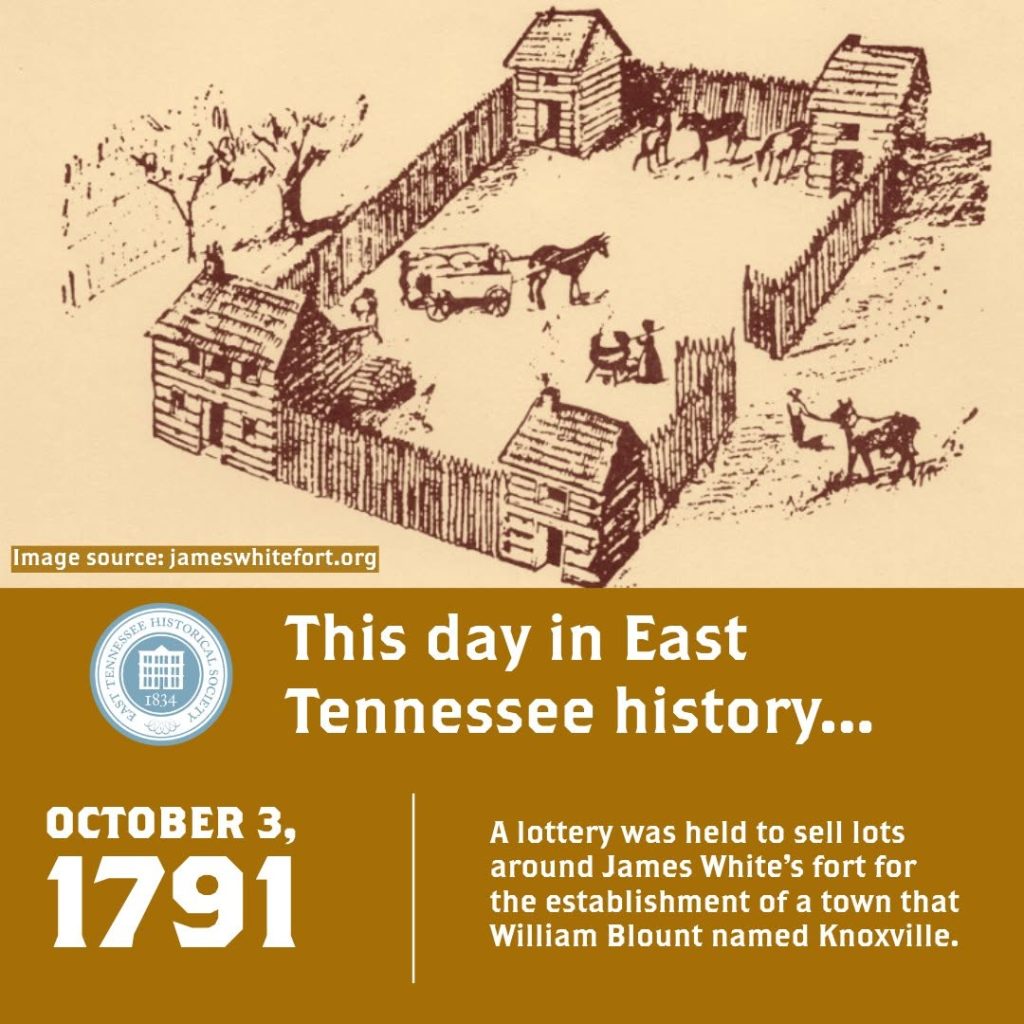 On this day in East Tennessee history In 1791, a lottery was held to sell lots around James White's fort for the establishment of a town than William Blount named Knoxville. #easttnhistory