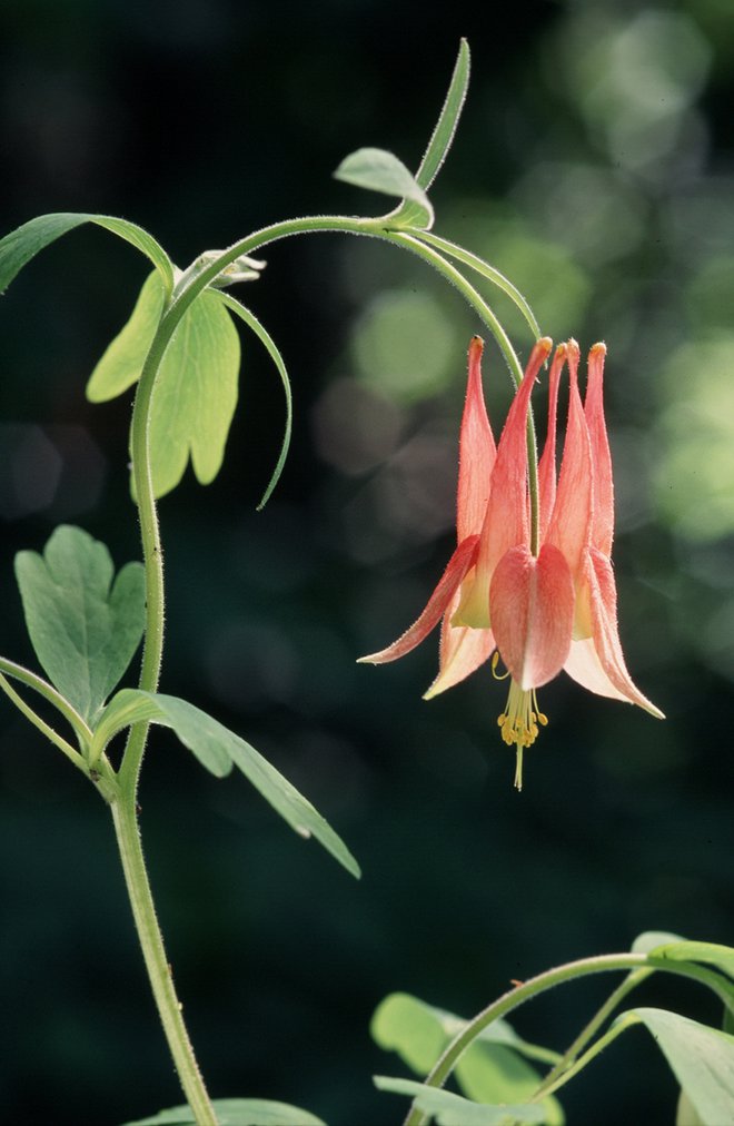 When the sun shines on columbine (Aquilegia Canadensis) flowers at just the right angle, they can take on the appearance of interestingly-shaped Japanese lanterns.