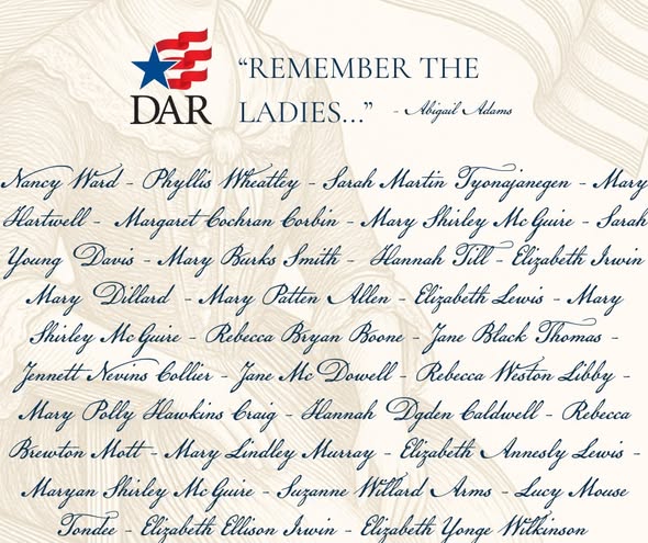 As showcased in the #AmericanRevolutionPBS documentary, women played key roles in the founding of our country. As Abigail Adams implored her husband to “remember the ladies,” the DAR aims to remember the many