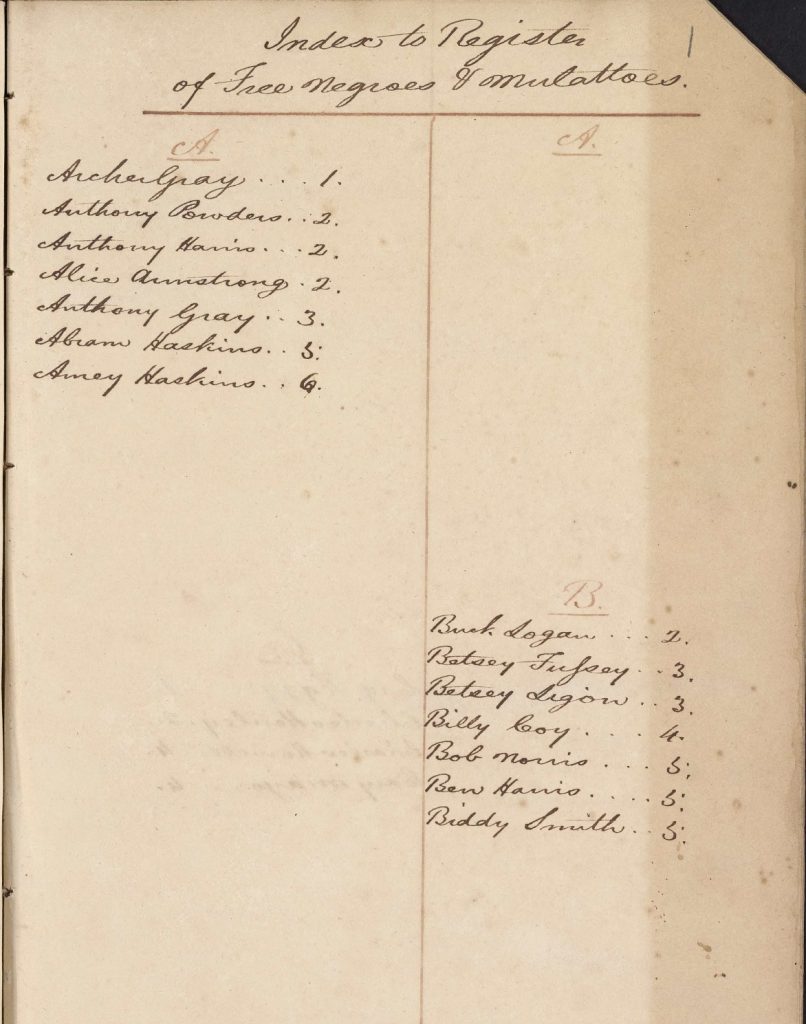 Powhatan County Virginia Register of Free Negroes & Mulattoes