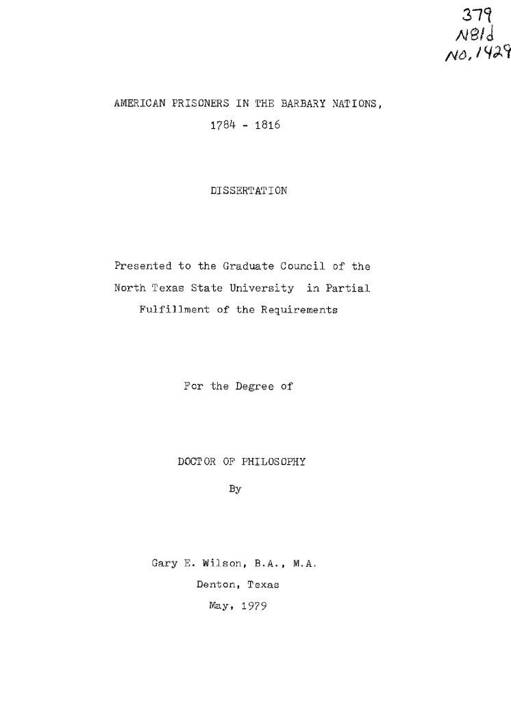 American Prisoners in the Barbary Nations, 1784-1816